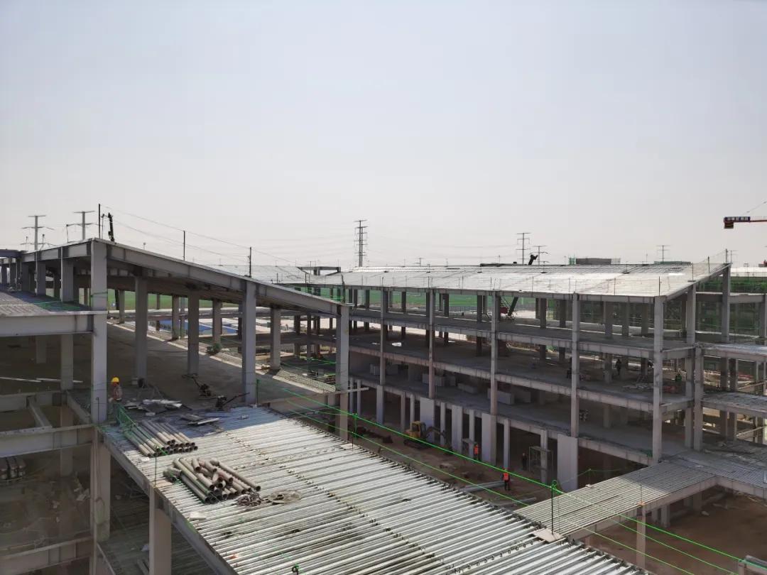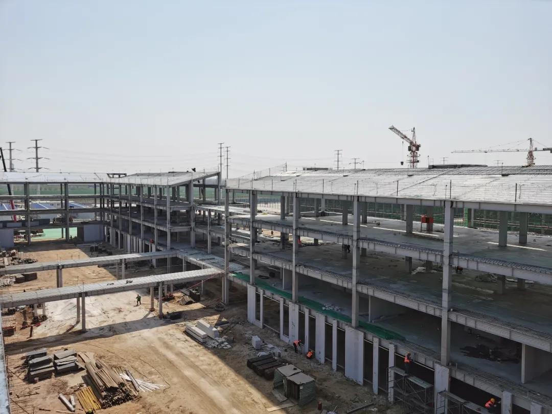 金环建设集团邯郸厂区承接了此项目的钢结构生产任务。为了第一时间满足生产需求,详图部同事在疫情封闭期间将电脑拉回家,居家抢做详图,并与该项目设计院(北方院)实现了无缝对接。生产一线为抢回延迟复工耽搁的工期,调集了充足的人员力量,各方有效组织紧密配合,全力奋战在生产一线,满足现场施工需求。