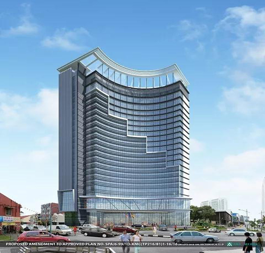 古晋喜来登酒店项目,位于马来西亚沙捞越洲古晋市中心,总建筑面积约4.1万平方米,建筑高度约110.76m(建成后将会是沙捞越最高建筑之一),地下2层,地上22层。