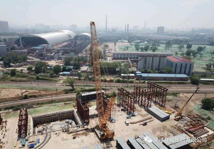 新店街建设工程是山西省太原市重点市政工程。该工程的建设将进一步优化提升太原市城区路网结构,打通城区北部东西向快速通道,完善城市北部功能、提升城市品质,形成以太原为中心的一小时经济圈,带动沿线地区土地开发,促进太原市经济发展、城市现代化建设以及推动城市社会经济快速发展均具有重要意义。金环建设集团桥梁公司承建本工程中新店街主线跨越铁路线钢箱梁T构转体桥施工是首个控制性节点工程。
